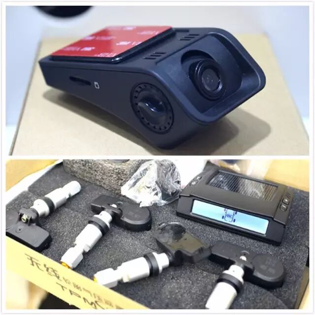 ▲大智创新隐藏式行车记录仪及胎压监测产品展示